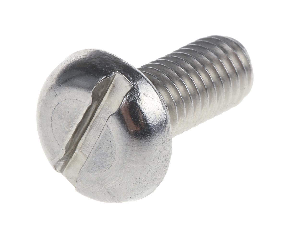 This is Slot Pan Head Machine Screw Stainless Steel A4 316 M5 12mm manufactured by RS Pro. The manufacturer part number is 189-456. The head has a pan shape. The product complies with all safety standards, such as din 85. The product is built with a standard m5 thread size metric . The product features a slot drive. The product is made from highly stable and reliable stainless steel. The stainless steel is a a4 316. Furthermore, it has about 12mm metric length . Furthermore, the pitch of the thread is 0.8mm.