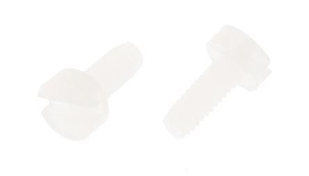This is Slot Cheese Head Machine Screws Nylon Plain M2.5 6mm manufactured by RS Pro. The manufacturer part number is 527-943. A quality product with a nice plain finish. The product is built with a standard m2.5 thread size metric . The head has a cheese shape. The product features a slot drive. The product is made from highly stable and reliable nylon. Furthermore, it has about 6mm metric length . Furthermore, the pitch of the thread is 0.45mm.