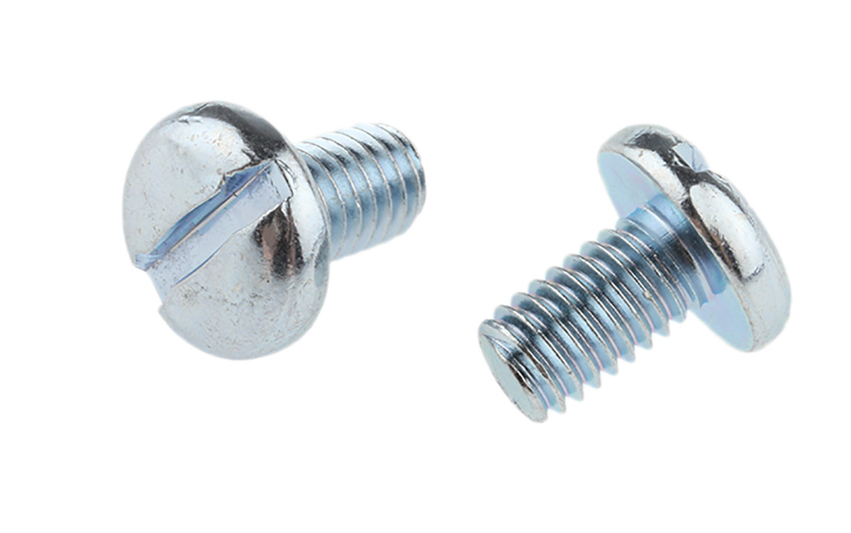 This is Slot Pan Head Machine Screw Steel Bright Zinc Plated M6 10mm manufactured by RS Pro. The manufacturer part number is 560-114. A quality product with a nice clear passivated zinc plated finish. The product is built with a standard m6 thread size metric . The product complies with all safety standards, such as din 85. The head has a pan shape. The product features a slot drive. The product is made from highly stable and reliable steel. Furthermore, it has about 10.0mm metric length . Furthermore, the pitch of the thread is 1.0mm.