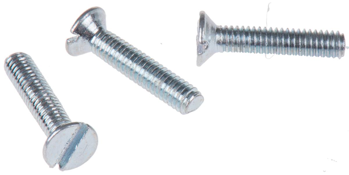 This is Slot Countersunk Head Machine Screw Steel Bright Zinc Plated M2.5 12mm manufactured by RS Pro. The manufacturer part number is 448-7956. A quality product with a nice bright zinc plated finish. The product is built with a standard m2.5 thread size metric . The product complies with all safety standards, such as din 963. The head has a countersunk shape. The product features a slot drive. The product is made from highly stable and reliable steel. Furthermore, it has about 12mm metric length . Furthermore, the pitch of the thread is 0.45mm.