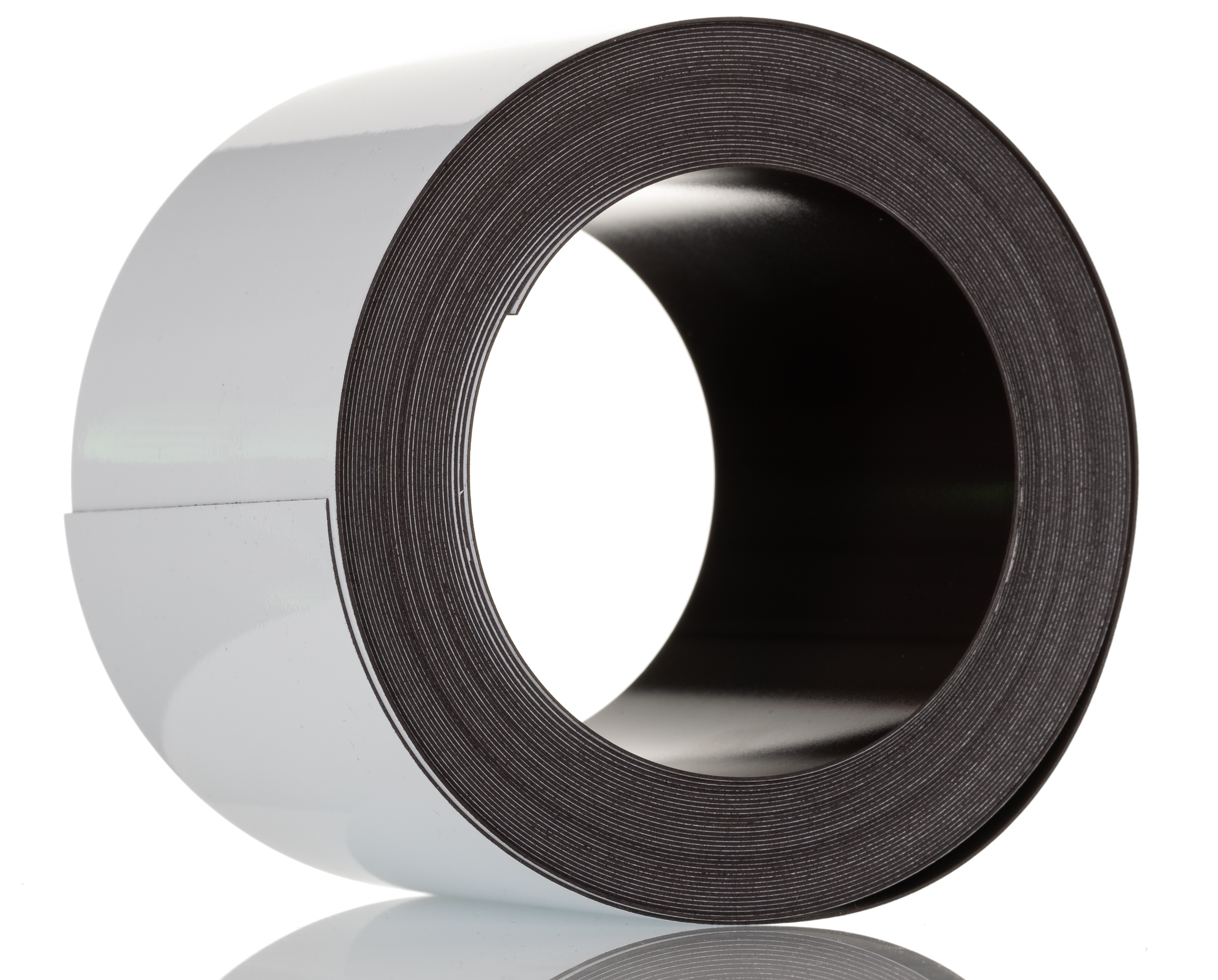 This is 10m Magnetic Tape Plain Back 0.5mm Thickness manufactured by RS PRO. The manufacturer part number is 265-5632. It has a decent white colour. The product is made from highly stable and reliable strontium ferrite. It has about 28g / cm² pull force . It is 0.5mm thick. Furthermore, the product is 90mm wide. Its accurate length is 10m. With a/an plain back type .