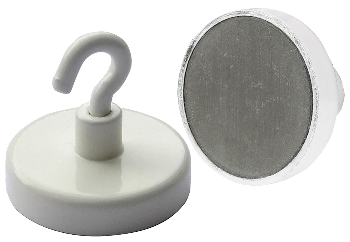 This is 25mm Hook Ferrite Magnet manufactured by Eclipse. The manufacturer part number is E879RS. Additionally, it has a hook type attachment . The product is made from highly stable and reliable ferrite. It has a standard 25mm width/diameter . It has about 4kg pull force . It is 8mm thick. Its accurate length is 34mm. It has a pot type magnet .