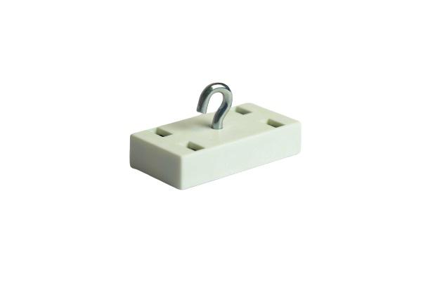 This is Block Magnet 27mm Hook Ferrite 15kg Pull manufactured by Eclipse. The manufacturer part number is CM5327. Additionally, it has a hook type attachment . The product is made from highly stable and reliable ferrite. It has a standard 27mm width/diameter . It has about 15kg pull force . It is 12mm thick. It has a typical thread size of m4. It has a block type magnet .