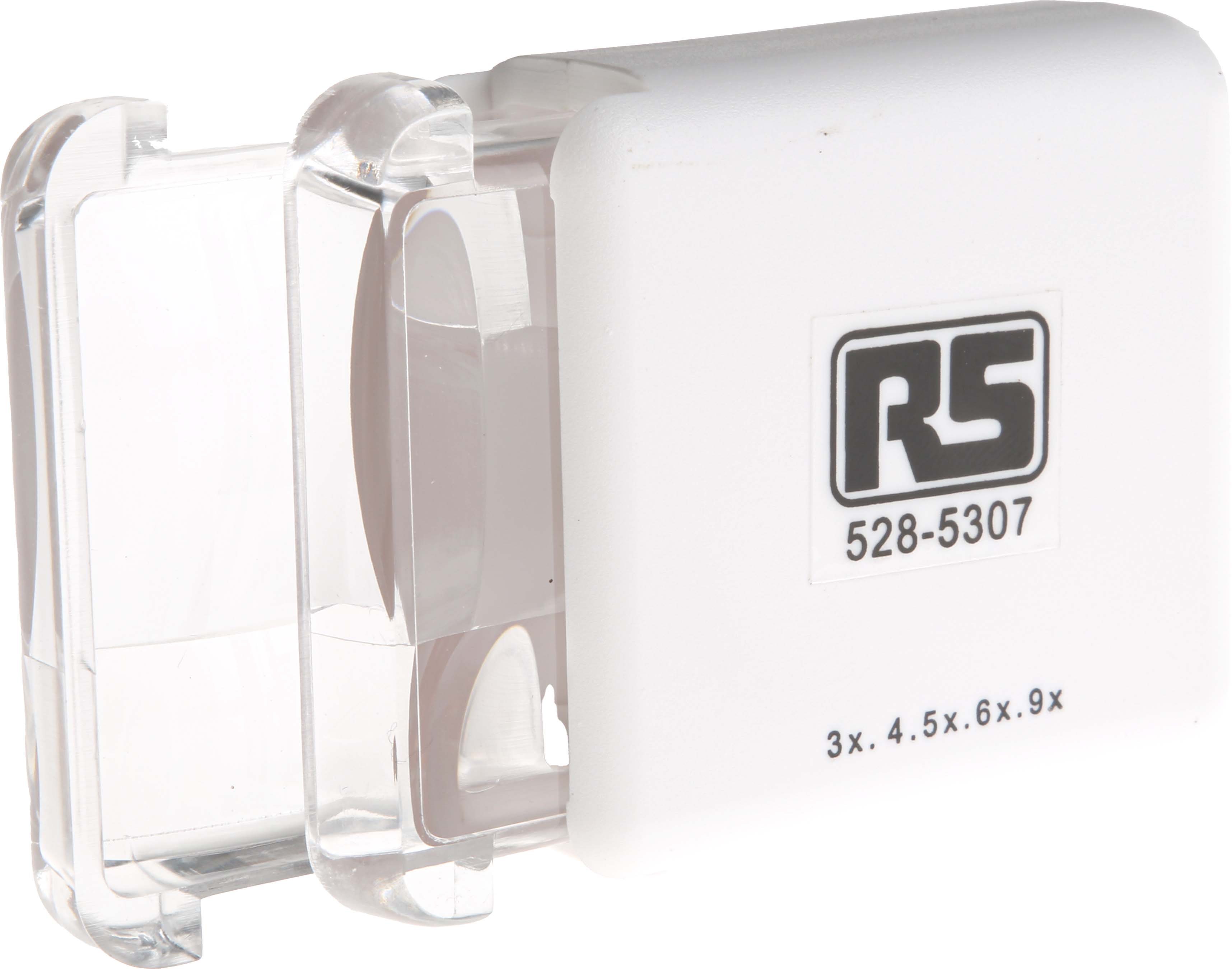 This is Pocket Magnifying Glass 3 4.5 6 9 x Magnification manufactured by RS Pro. The manufacturer part number is 528-5307. It has a magnification power of 3x, 4.5x, 6x, 9x . It comes in pocket magnifier configuration. It is created with a pocket magnifying glass type magnifier .