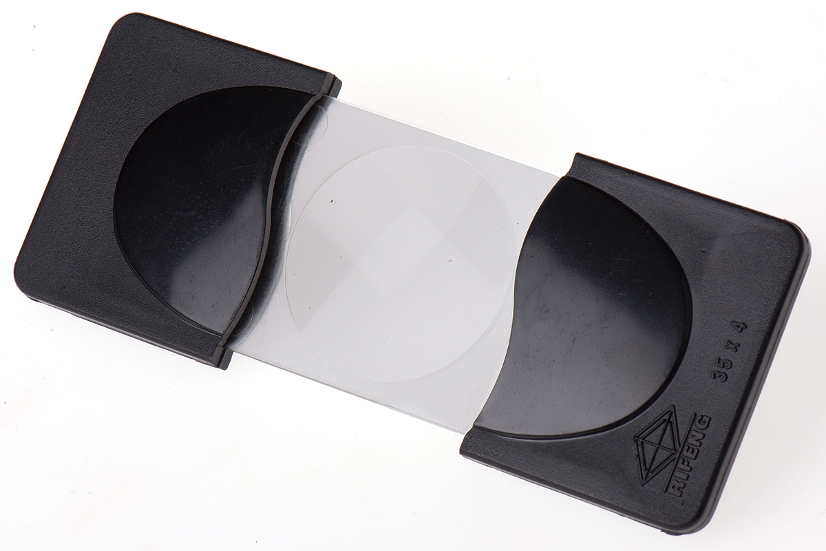 This is Magnifier Sliding Cover 4 x Magnification 32mm diameter manufactured by RS Pro. The manufacturer part number is 614-1539. It has 32mm diameter. It has a magnification power of 4x . It comes in sliding cover magnifier configuration. It is created with a pocket magnifying glass type magnifier .