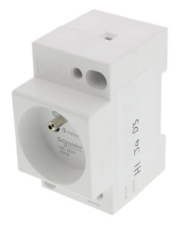 This is French Mains Connector Type E 16A DIN Rail Mount 250 V ac manufactured by Merlin Gerin. The manufacturer part number is 16776. The product has a current rating of 16a. The product is available in din rail mount configuration. Moreover, the product has a nominal 250 v ac voltage rating. In addition, female is the available "Gender" of the product. It has a decent grey colour. While the pole has 2p+e format. type e Connector type offer robust functionality. It comprises a socket. Its main socket is of type e - french . Its country is france .