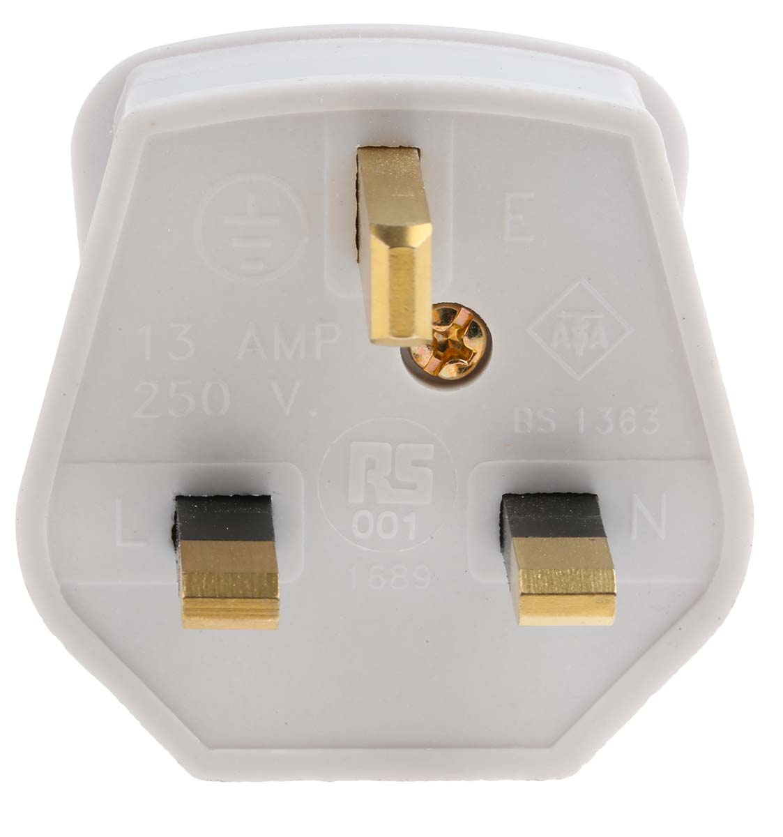 This is UK Mains Plug BS 1363 3A Cable Mount 250 V ac manufactured by RS Pro. The manufacturer part number is 490-009. The product has a current rating of 3a. The product is available in cable mount configuration. Moreover, the product has a nominal 250 v voltage rating. Its main plug is of type g - british bs1363 type . In addition, male is the available "Gender" of the product. It has a decent white colour. While the pole has 2p+e format. The product's body is nicely designed from thermoplastic, urea formaldehyde materials. It comprises a plug. Its country is uk . It has 0 USB sockets .