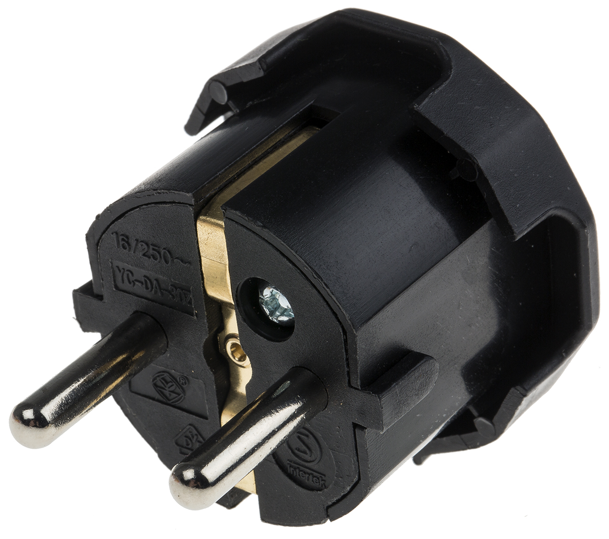 This is German Mains Plug Type F - German Schuko 16A Cable Mount 250 V manufactured by RS Pro. The manufacturer part number is 849-6119. The product has a current rating of 16a. The product is available in cable mount configuration. Moreover, the product has a nominal 250 v voltage rating. Its main plug is of type f - german schuko type . In addition, male is the available "Gender" of the product. It has a decent black colour. It allows screw termination method. While the pole has 2p+e format. It comprises a plug. Its main socket is of type f - german schuko . Its country is germany . It has 0 USB sockets .