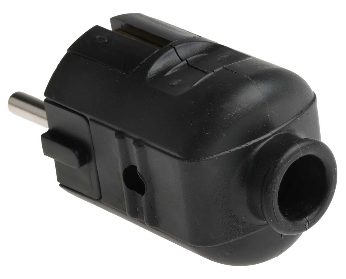 Schuko Mains Plugs, Black or White A choice of either black or white Schumo plugs which hinge open for easy connection to a suitable cord. Choice: 849-6103 : White 849-6112 : Black Rating: 16A / 250V Operating temperature range: -20°C (-4°F) to +80°C (+176°F)