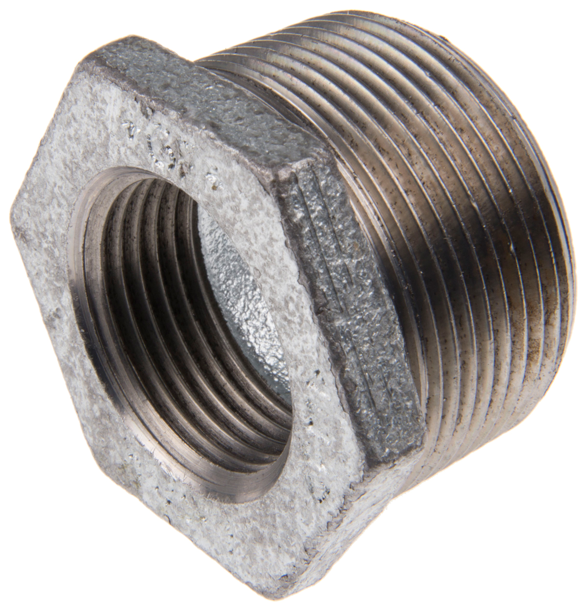 This is Malleable Iron Fitting Reducer Bush 1-1/2 in BSPT Male (Connection 1) 1 in BSPP Female (Connection 2) manufactured by Georg Fischer. The manufacturer part number is 770241235. A quality product with a nice galvanised finish. The fitting direction is straight . This reducer bush tool is easy to use with versatile applications in various settings. It has a standard 1in thread size 2 . It has a standard 1-1/2in thread size 1 . In addition, its connection is of female gender 2 . Moreover, its thread is of bspp standard 2 . Its connection 1 is of male gender . In addition, it has a thread of bspt standard 1 .