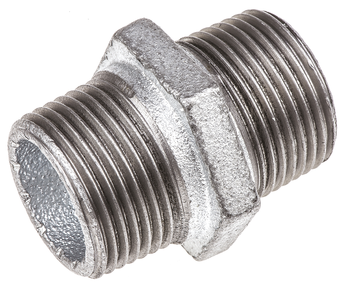 This is Malleable Iron Fitting Hexagon Nipple 1 in BSPT Male (Connection 1) 1 in BSPT Male (Connection 2) manufactured by Georg Fischer. The manufacturer part number is 770280206. A quality product with a nice galvanised finish. This hexagon nipple tool is easy to use with versatile applications in various settings. It has a standard 1in thread size 2 . It has a standard 1in thread size 1 . In addition, its connection is of male gender 2 . Moreover, its thread is of bspt standard 2 . Its connection 1 is of male gender . In addition, it has a thread of bspt standard 1 .