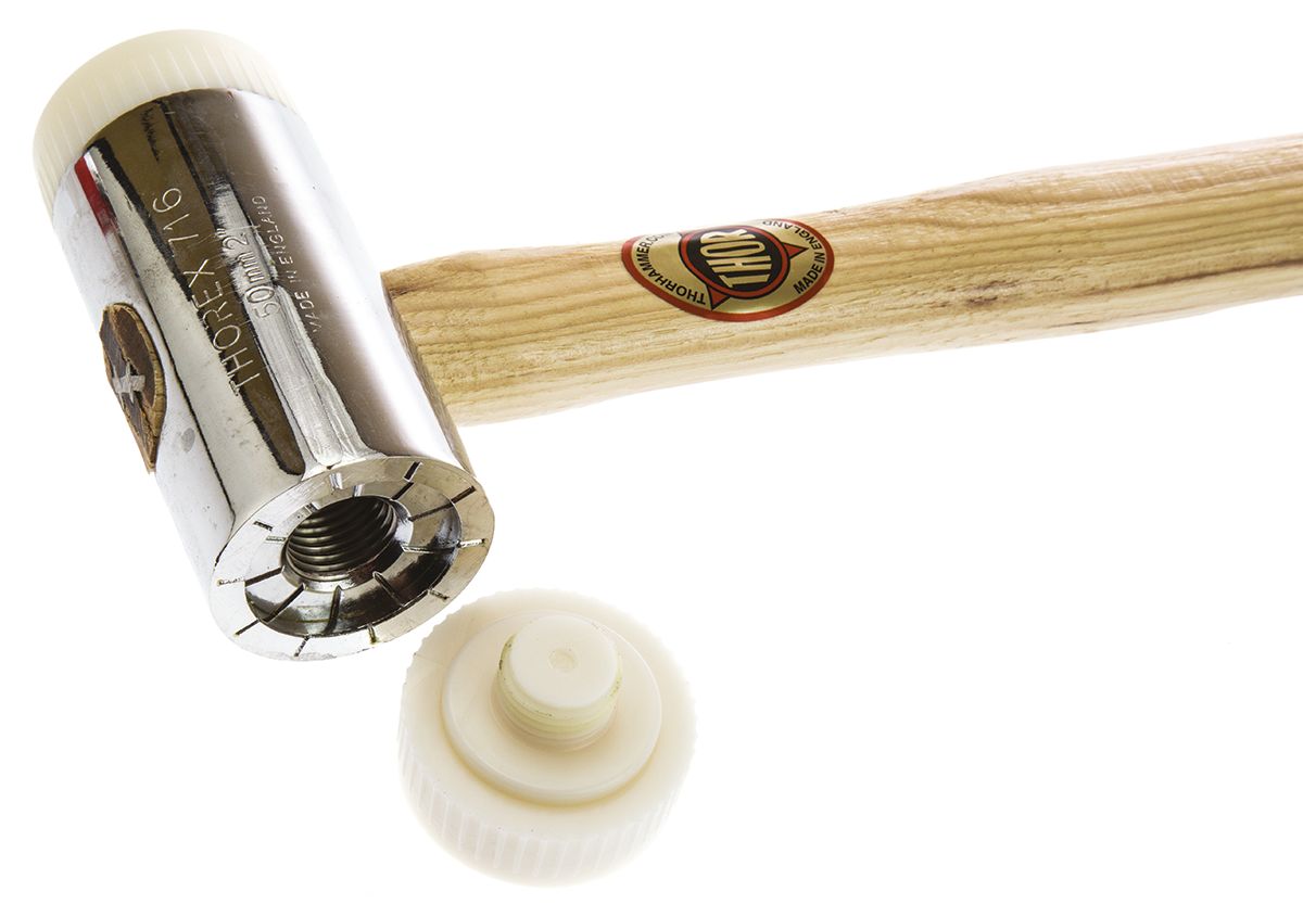 This is 1.3kg Round Chrome Plated Zinc Mallet With Replaceable Face manufactured by RS Pro. The manufacturer part number is 732-561. The diameter of the head is [Head diameter]. Its face material is nylon . Its head is made using chrome plated zinc material . The typical product's weight is 1.3kg. Its comfortable handle is manufactured from durable wood material. It has a replaceable face yes .