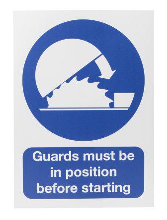 This is Vinyl Mandatory Label Workplace Safety Sign Guards must be..starting-Text with English Text 150 x 200mm manufactured by RS Pro. The manufacturer part number is 562-687. Its text message shows guards must be in position before starting . Additionally, it is self-adhesive yes . It has a label . It has a decent blue/white colour. The product is made from highly stable and reliable vinyl. In addition, the height is 200 mm. Furthermore, the product is 150mm wide. It contains 5 item per package . However, its text language is english . In addition, it displays workplace safety sign description .