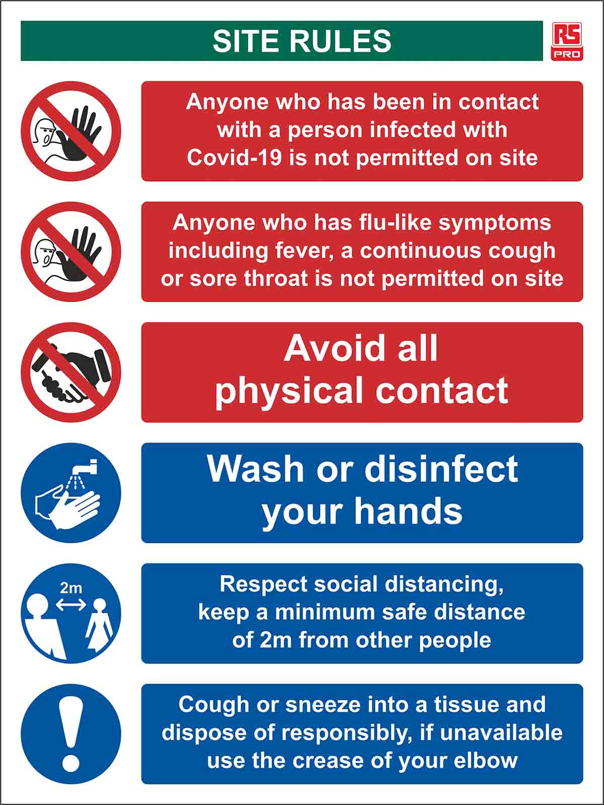 This is PVC Mandatory Site Safety Sign With English Text 400 x 300mm manufactured by RS PRO. The manufacturer part number is 201-3320. Its text message shows covid-19 rules . Additionally, it is self-adhesive no . The product is made from highly stable and reliable pvc. In addition, the height is 400 mm. Furthermore, the product is 300mm wide. However, its text language is english . It includes a symbol and text . In addition, it displays site safety sign description .