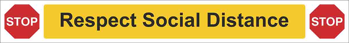 This is Vinyl Mandatory Social Distance Sign With English Text 800 x 100mm manufactured by RS PRO. The manufacturer part number is 201-3324. Its text message shows respect social distance . Additionally, it is self-adhesive yes . The product is made from highly stable and reliable vinyl. In addition, the height is 100 mm. Furthermore, the product is 800mm wide. However, its text language is english . It includes a symbol and text . In addition, it displays social distance sign description .