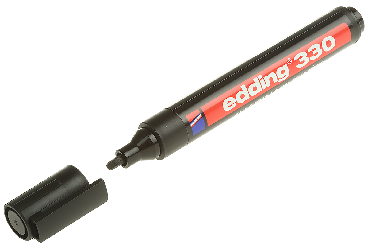 This is Extra Fine Fine Medium Tip Black Permanent Marker manufactured by Edding. The manufacturer part number is 330-001. The tip is designed with a chisel shape. The tip is extra fine, fine, medium in size. Its ink colour is black . In addition, it has a/an permanent marker type marker .