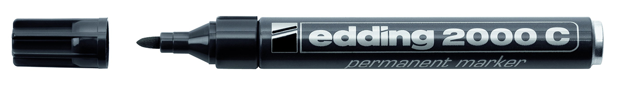 This is Fine Tip Black Permanent Marker manufactured by Edding. The manufacturer part number is 2000-001. The tip is designed with a bullet shape. The tip is fine in size. Its ink colour is black . In addition, it has a/an permanent marker type marker .