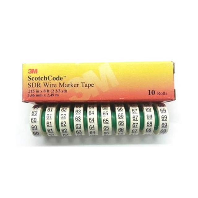 This is manufactured by 3M. The manufacturer part number is SDR-60-69. It is assigned with possible HTSUS value of 3919.10.2055. The product is rohs compliant. The product has -40°c ~ 121°c operating temperature range. The product is highly reliable with a long-lasting period of 24 months. It comes in wire marker, tape configuration. The product is made from highly stable and reliable polyester. In addition, it is reach unaffected. Its warranty starts from date of manufacture. The diameter of the cable includes cut to desired diameter. Legend Information: 60-69. The 3m's product offers user-desired applications. Its typical moisture sensitivity level is not applicable. It has a long 4 weeks standard lead time. It has a classic white colour. The product scotchcode™ sdr, is a highly preferred choice for users. In addition, bulk is the available packaging type of the product. The product is available in 0.22" w x 96.00" l (5.5mm x 2.4m) size. Moreover, it corresponds to sdr, a base product number of the product. The product is designated with the ear99 code number.