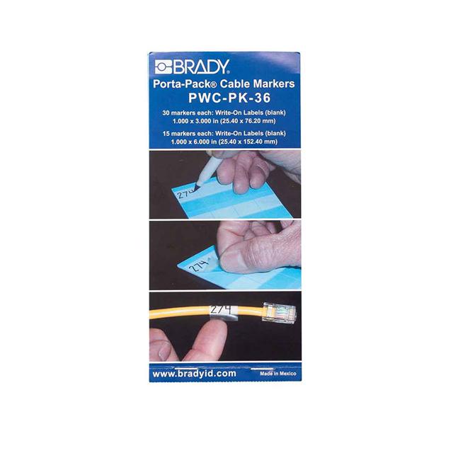 This is manufactured by Brady Corporation. The manufacturer part number is PWC-PK-36. The product is rohs3 compliant. The product has -40°c ~ 66°c operating temperature range. It comes in wire marker, book (perforated) configuration. The product is made from highly stable and reliable vinyl. In addition, it is reach unaffected. Legend Information: blank. It is shipped in bulk package . Its typical moisture sensitivity level is not applicable. It has a long 4 weeks standard lead time. It has a classic white colour. The product porta-pack®, is a highly preferred choice for users. Moreover, it corresponds to pwc-pk, a base product number of the product. The product is available in 0.88" w x 2.25" l (22.4mm x 57.2mm) size.