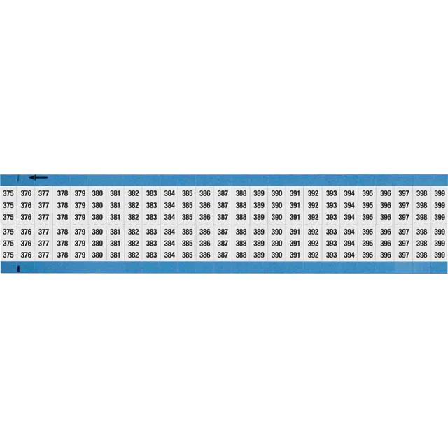 This is manufactured by Brady Corporation. The manufacturer part number is WM-375-399-SC-PK. It is assigned with possible HTSUS value of 3919.90.5060. The product is rohs3 compliant. It comes in wire marker, cards configuration. The product is made from highly stable and reliable vinyl cloth. In addition, it is reach unaffected. Legend Information: 375-399. It is shipped in bulk package . Its typical moisture sensitivity level is not applicable. It has a long 4 weeks standard lead time. It has a classic black legend, white background colour. The product is available in 0.36" w x 0.75" l (9.1mm x 19.1mm) size. Moreover, it corresponds to wm-375, a base product number of the product. The product is designated with the ear99 code number.