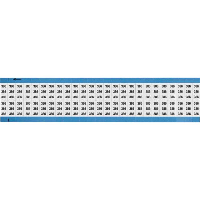 This is manufactured by Brady Corporation. The manufacturer part number is WM-386-SC-PK. It is assigned with possible HTSUS value of 3919.90.5060. The product is rohs3 compliant. It comes in wire marker, cards configuration. The product is made from highly stable and reliable vinyl cloth. In addition, it is reach unaffected. Legend Information: 386. It is shipped in bulk package . Its typical moisture sensitivity level is not applicable. It has a long 4 weeks standard lead time. It has a classic black legend, white background colour. The product is available in 0.36" w x 0.75" l (9.1mm x 19.1mm) size. Moreover, it corresponds to wm-386, a base product number of the product. The product is designated with the ear99 code number.