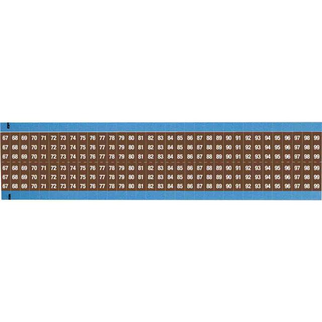 This is manufactured by Brady Corporation. The manufacturer part number is WM-67-99-BR-SC-PK. It is assigned with possible HTSUS value of 3919.90.5060. The product is rohs3 compliant. It comes in wire marker, cards configuration. The product is made from highly stable and reliable vinyl cloth. In addition, it is reach unaffected. Legend Information: 67-99. The brady corporation's product offers user-desired applications. Its typical moisture sensitivity level is not applicable. It has a long 4 weeks standard lead time. It has a classic white legend, brown background colour. In addition, bulk is the available packaging type of the product. The product is available in 0.27" w x 0.75" l (6.9mm x 19.1mm) size. Moreover, it corresponds to wm-67, a base product number of the product. The product is designated with the ear99 code number.