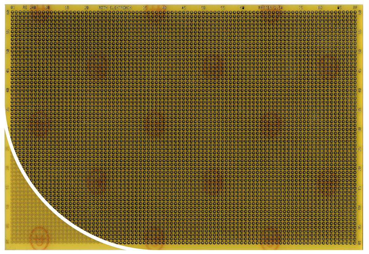 This is Single Sided Matrix Board FR4 with 61 x 87 1mm Holes 2.54 x 2.54mm Pitch 233.4 x 160 x 1.5mm manufactured by Roth Elektronik. The manufacturer part number is RE240-LF. It has a 61 x 87 layout hole . Its copper thickness is about 35µm . The given dimensions of the product include 233.4 x 160 x 1.5mm. Its hole pitch is about 2.54 x 2.54mm . It is 1.5mm thick. Furthermore, the product is 160mm wide. Its accurate length is 233.4mm. Moreover, its FR material is of fr4 grade . Has a hole diameter of 1mm. Its base is made up of epoxy glass fabric laminate material . Additionally, it is/has 1 sides .