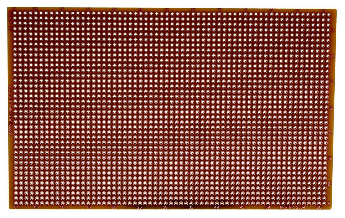 This is Single Sided Matrix Board FR2 with 38 x 61 1mm Holes 2.54 x 2.54mm Pitch 160 x 100 x 1.5mm manufactured by Roth Elektronik. The manufacturer part number is RE200-HP. It has a 38 x 61 layout hole . Its copper thickness is about 35µm . The given dimensions of the product include 160 x 100 x 1.5mm. Its hole pitch is about 2.54 x 2.54mm . It is 1.5mm thick. Furthermore, the product is 100mm wide. Its accurate length is 160mm. Moreover, its FR material is of fr2 grade . Has a hole diameter of 1mm. Its base is made up of synthetic resin bonded paper material . Additionally, it is/has 1 sides .