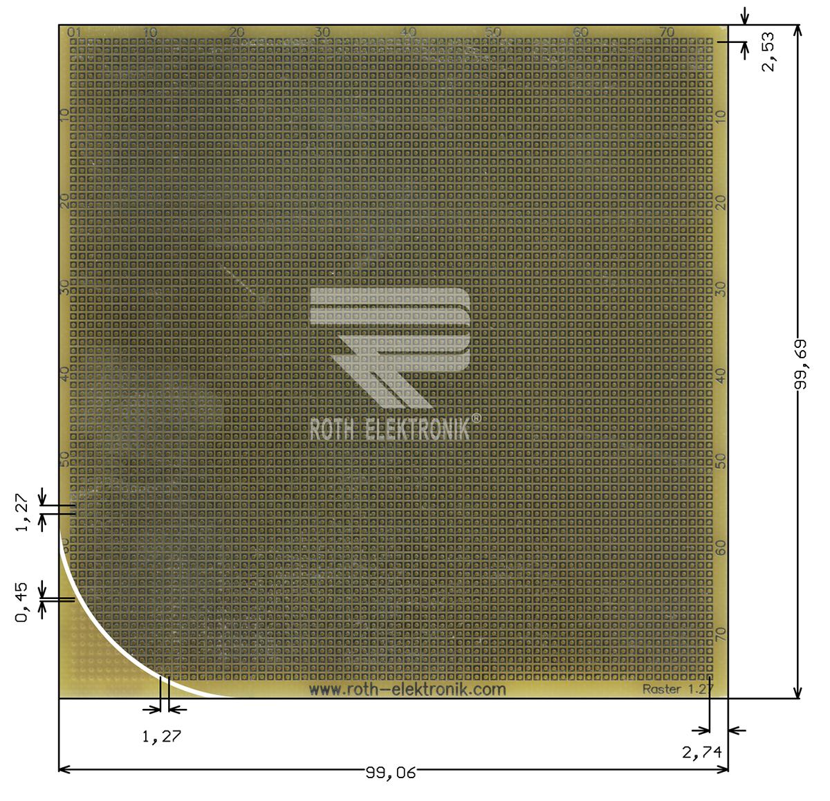 This is Single Sided Matrix Board FR4 with 75 x 75 0.45mm Holes 1.27 x 1.27mm Pitch 99.69 x 99.06 x 1.5mm manufactured by Roth Elektronik. The manufacturer part number is RE014-LF. It has a 75 x 75 layout hole . Its copper thickness is about 35µm . The given dimensions of the product include 99.69 x 99.06 x 1.5mm. Its hole pitch is about 1.27 x 1.27mm . It is 1.5mm thick. Furthermore, the product is 99.06mm wide. Its accurate length is 99.69mm. Moreover, its FR material is of fr4 grade . The circuit has one side pattern. Has a hole diameter of 0.45mm. Its base is made up of epoxy fibre-glass material . Additionally, it is/has 1 sides .