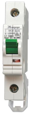 This is GREEN ELECTRIC MCB Mini Circuit Breaker 1P 25 A 10 kA Curve B manufactured by Kopp. The manufacturer part number is 7225.0000.2. The product has a current rating of 25a. This is a type of mcb, a circuit breaker with unique features. The product green electric, is a highly preferred choice for users. It has a model number 7225.0000.2. The product has a rated DC voltage of 60v. The product has a rated AC voltage of 230 → 400v. The product has 10 ka breaking capacity at maximum voltage rating. It allows type b tripping features. It has equipped with 1p poles.