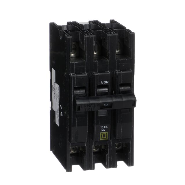 This is QOU MCB Mini Circuit Breaker 3P 70 A 10 kA manufactured by Schneider Electric. The manufacturer part number is QOU370. The product has a current rating of 70 a. The product qou, is a highly preferred choice for users. Its accurate length is 171.45mm. Furthermore, the product is 57.15mm wide. The product comes in 75mm depth. The product has a rated AC voltage of 240 v. It features 10 ka breaking capacity. It has equipped with 3 poles. It is a type of thermal magnetic breaker. 60 v of DC voltage rating. The product is available in din rail configuration. The product exhibits 240 v of AC voltage rating. In addition, box is the available packaging type of the product. It is approved by csa, iec, ul. The product carries lever actuator. Is this product illuminated? none. It has a long 5 weeks standard lead time. Additionally, the product's output is 70a. The schneider electric's product offers user-desired applications.