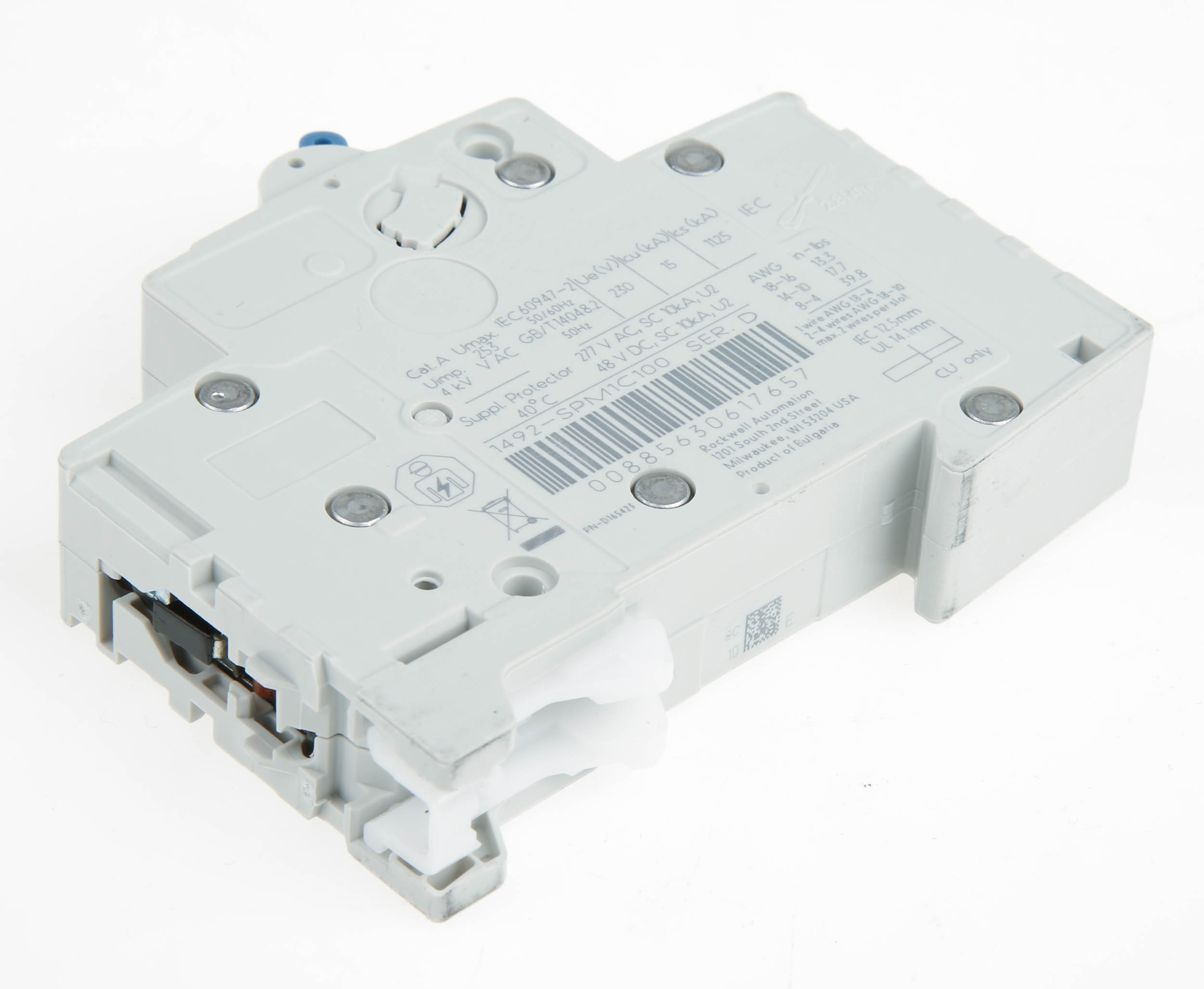 This is 1492 1492SPM MCB Mini Circuit Breaker 1P 10 A 10 kA Curve C manufactured by Allen Bradley. The manufacturer part number is 1492-SPM1C100. The product has a current rating of 10a. Applications Information involves general purpose. It utilises thermal-magnetic tripping mechanism. The product 1492-spm, is a highly preferred choice for users. This is a type of mcb, a circuit breaker with unique features. Its accurate length is 17.5mm. The product has 10 ka breaking capacity at maximum voltage rating. The product has a rated DC voltage of 48v. The product is available in din rail mount style. Furthermore, the product is 74mm wide. The product comes in 88mm depth. The product has a rated AC voltage of 277v. It has a/an instantaneous break time . It features 1492 range. The terminal contact is kind of screw. It allows type c tripping features. It has equipped with 1 poles. It is a toggle switch reset actuator.