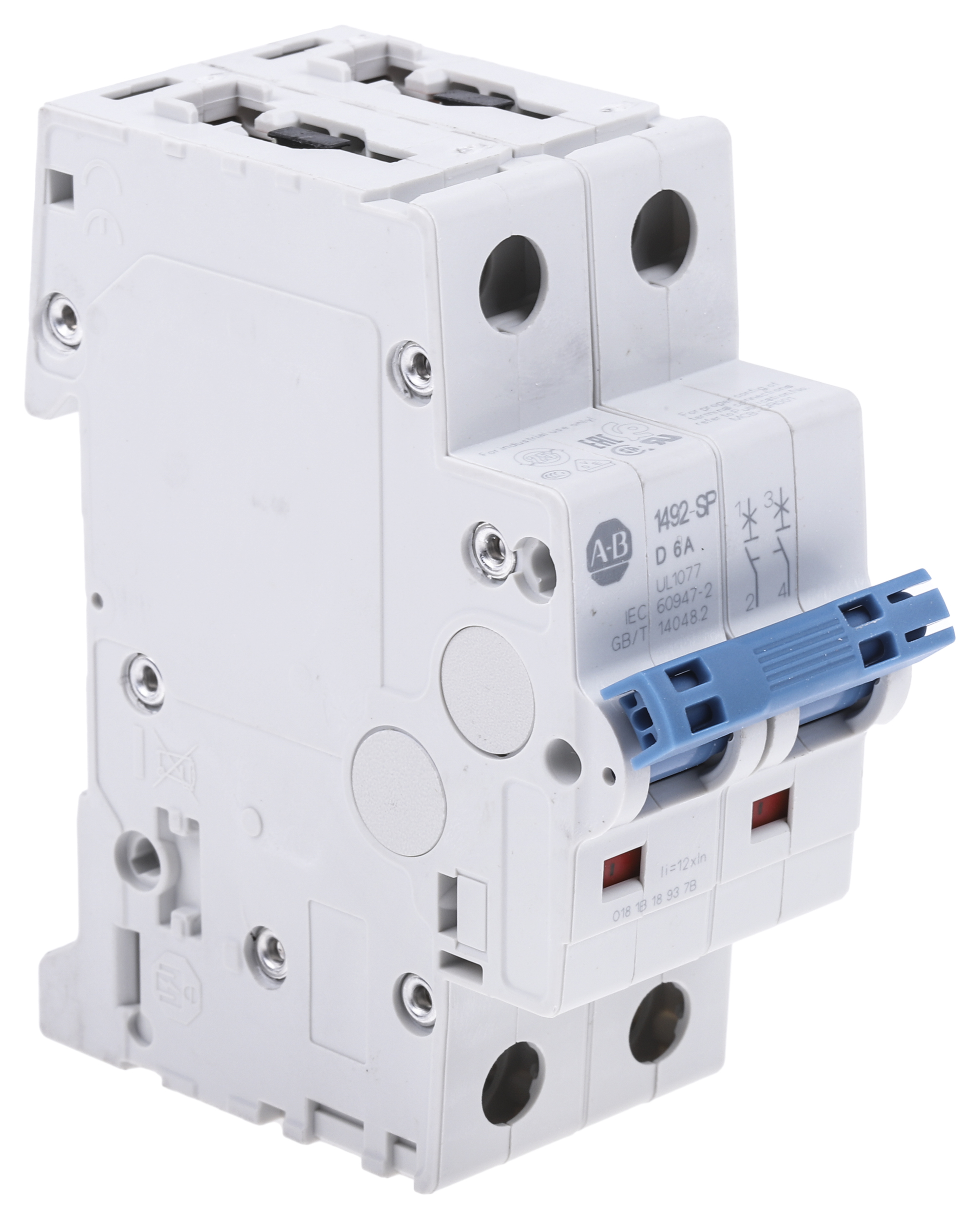 This is 1492 1492SPM MCB Mini Circuit Breaker 2P 6 A 10 kA Curve D manufactured by Allen Bradley. The manufacturer part number is 1492-SPM2D060. The product has a current rating of 6a. Applications Information involves general purpose. It utilises thermal-magnetic tripping mechanism. The product 1492-spm, is a highly preferred choice for users. This is a type of mcb, a circuit breaker with unique features. Its accurate length is 35mm. The product has 10 ka breaking capacity at maximum voltage rating. The product has a rated DC voltage of 96v. The product is available in din rail mount style. Furthermore, the product is 75mm wide. The product comes in 88mm depth. The product has a rated AC voltage of 277 v, 480v. It has a/an instantaneous break time . It features 1492 range. The terminal contact is kind of screw. It allows type d tripping features. It has equipped with 2 poles. It is a toggle switch reset actuator.
