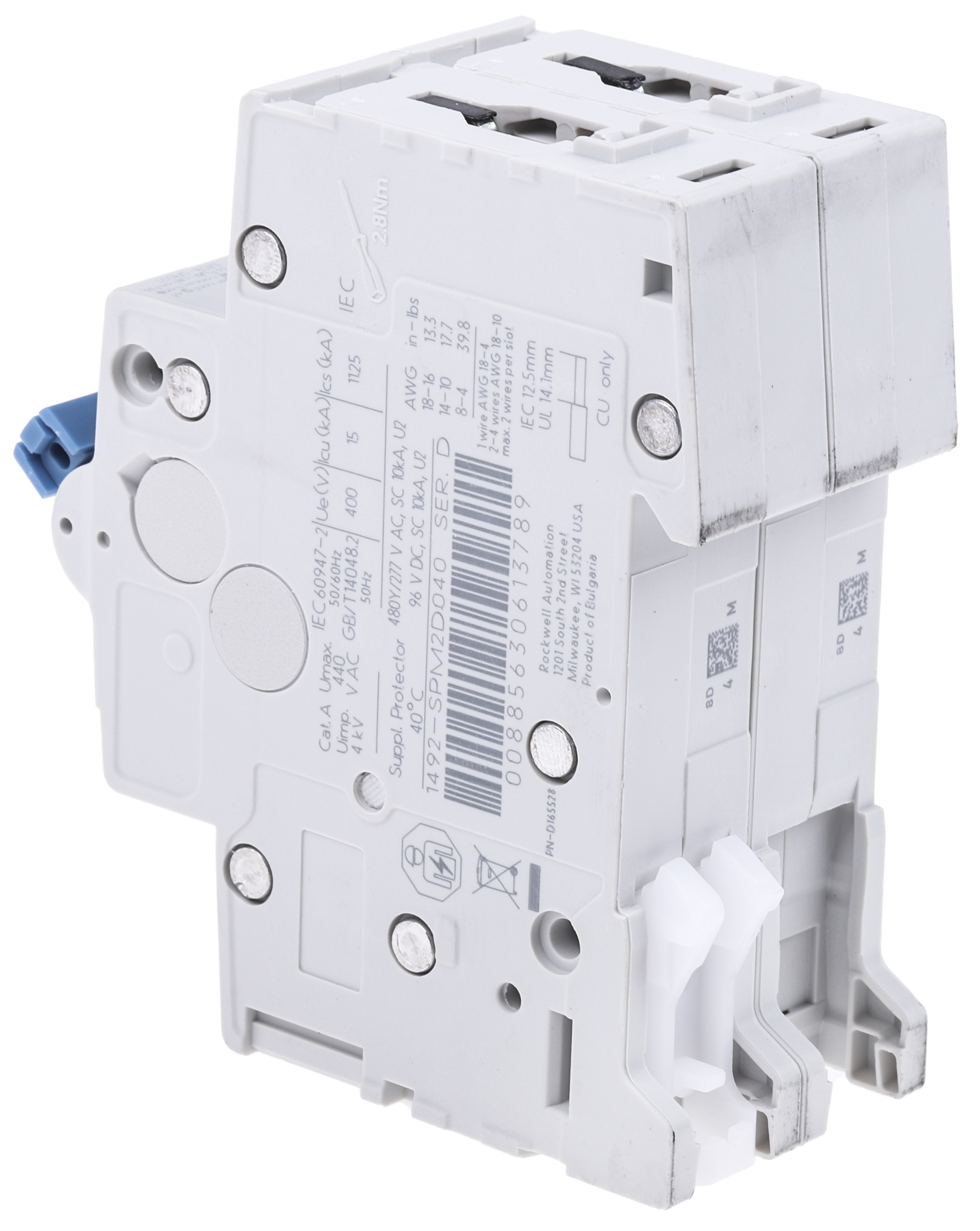 1492 SP Series - Type D Allen Bradley general purpose MCBs from the 1492 SP series. The MCBs have a Type D tripping characteristic and an instantaneous break time. 1, 2 or 3 pole versions available. All the MCBs incorporate screw terminals and can be DIN Rail mounted. 1, 2 or 3 pole versions DIN Rail mount Instantaneous break time Screw Terminals Thermal-magnetic tripping mechanism Allen Bradley MCBs