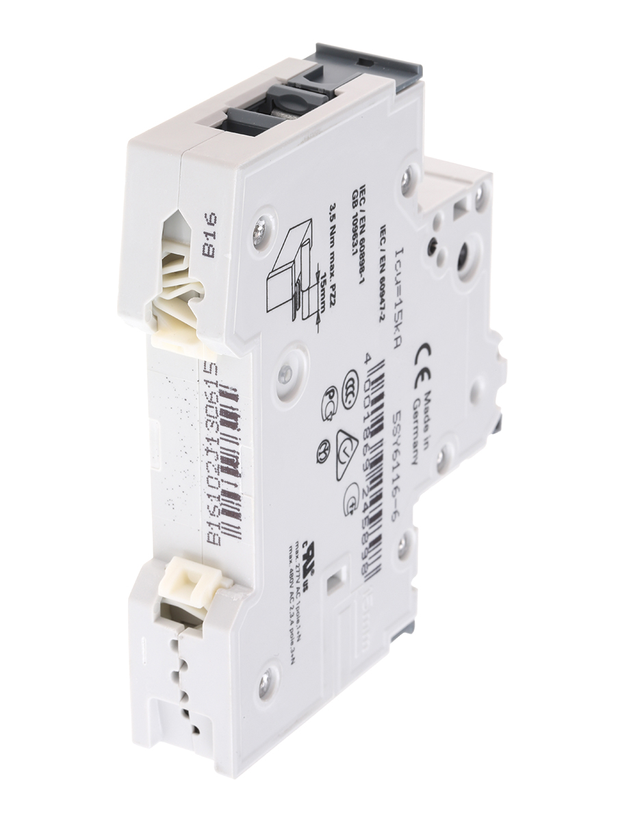 This is Sentron 5SY6 MCB Mini Circuit Breaker 1P 16 A 6 kA Curve B manufactured by Siemens. The manufacturer part number is 5SY6116-6. Is it a better world product? yes. The product has a current rating of 16a. This is a type of mcb, a circuit breaker with unique features. The product 5sy6, is a highly preferred choice for users. Its accurate length is 89.8mm. The product has 6 ka breaking capacity at maximum voltage rating. It allows type b tripping features. The product is available in din rail mount style. Furthermore, the product is 17.5mm wide. The product comes in 76mm depth. The product has a rated AC voltage of 230 v, 400v. It features sentron range. It has equipped with 1 poles.