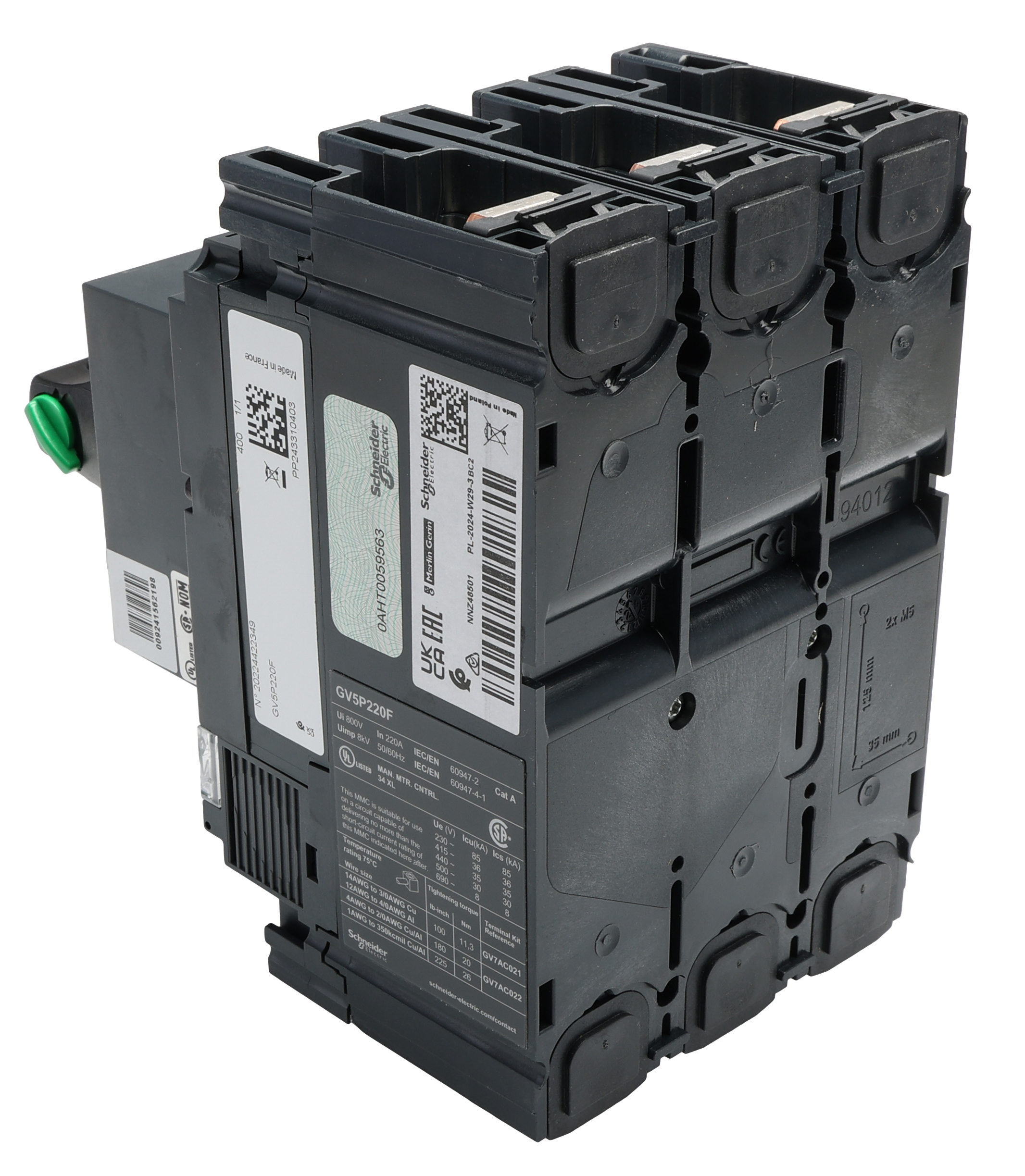 This is 3P 36kA Motor CB manufactured by Schneider Electric. The manufacturer part number is GV5P220F. Better World Verification Options - green premium. Is it a better world product? yes. The product has a current rating of 220a. The product has 36 ka breaking capacity at maximum voltage rating. This is a type of mcb, a circuit breaker with unique features. It utilises thermal-magnetic tripping mechanism. The product gv5p, is a highly preferred choice for users. Its accurate length is 105mm. It has a model number gv5p220f. The product is available in din rail mount style. Furthermore, the product is 155mm wide. The product comes in 161mm depth. The product has a rated AC voltage of 690v. It has a/an instantaneous break time . It features tesys range. The terminal contact is kind of screw. It has equipped with 3 poles.