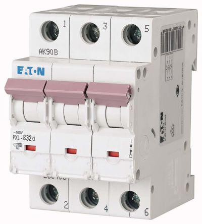 This is PXL 32 A MCB Mini Circuit Breaker 3P Curve B manufactured by Eaton. The manufacturer part number is 236403. The product has a current rating of 32 a. The product pxf, is a highly preferred choice for users. It has a model number pxl-b32/3. It allows type b tripping features. It features pxl range. It features 10 ka breaking capacity. It has equipped with 3 poles.