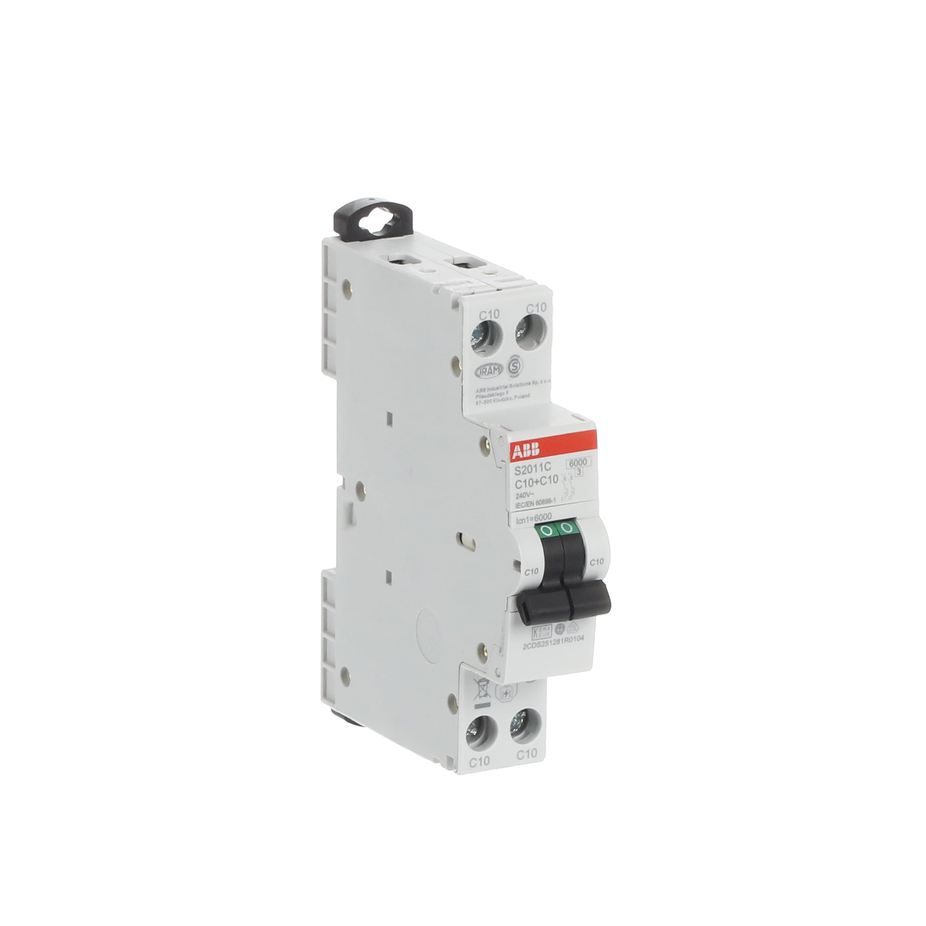 This is Compact 10A MCB Curve C manufactured by ABB. The manufacturer part number is 2CDS251281R0104. Is it a better world product? yes. The product has a current rating of 10a. This is a type of mcb, a circuit breaker with unique features. The product s200c, is a highly preferred choice for users. Its accurate length is 70mm. It has a model number s2011c-c10. It allows type c tripping features. The product is available in din rail mount style. Furthermore, the product is 18mm wide. The product comes in 70mm depth. The product has a rated AC voltage of 240v. The product has 6 ka breaking capacity at maximum voltage rating. The product also provides special features, such as short circuit protection. It has equipped with 2 poles. It is a toggle switch reset actuator.