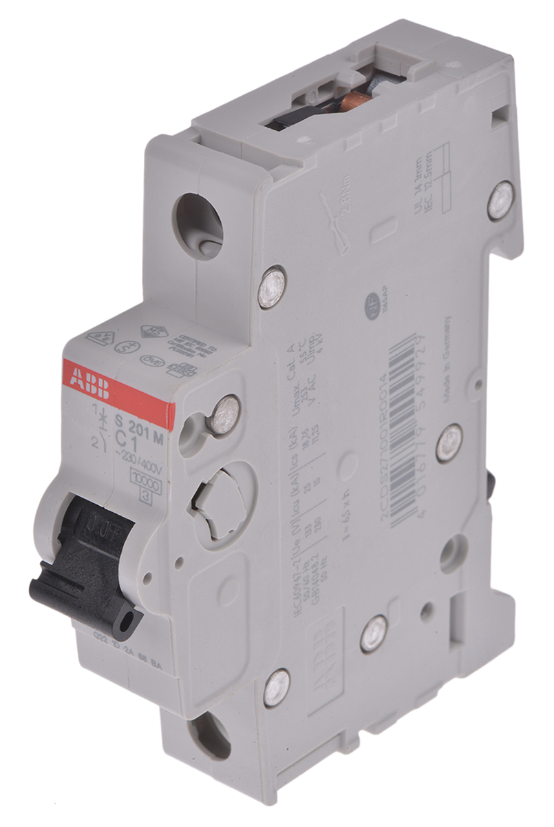 This is System M Pro 1A MCB Mini Circuit Breaker1P Curve C Breaking Capacity 10 kA manufactured by ABB. The manufacturer part number is 2CDS271001R0014 S201M-C1. Is it a better world product? yes. The product has a current rating of 1a. Furthermore, the product is 17.5mm wide. It utilises thermal tripping mechanism. The product s200m, is a highly preferred choice for users. This is a type of mcb, a circuit breaker with unique features. Its accurate length is 88mm. It has a model number s201m-c2. The product has a rated DC voltage of 72v. The product is available in din rail mount style. Applications Information involves commercial, industrial. The product comes in 69mm depth. The product has a rated AC voltage of 253v. The product has 10 ka breaking capacity at maximum voltage rating. The terminal contact is kind of screw. It features system pro m compact range. It allows type c tripping features. It has equipped with 1p poles. It is a toggle switch reset actuator.
