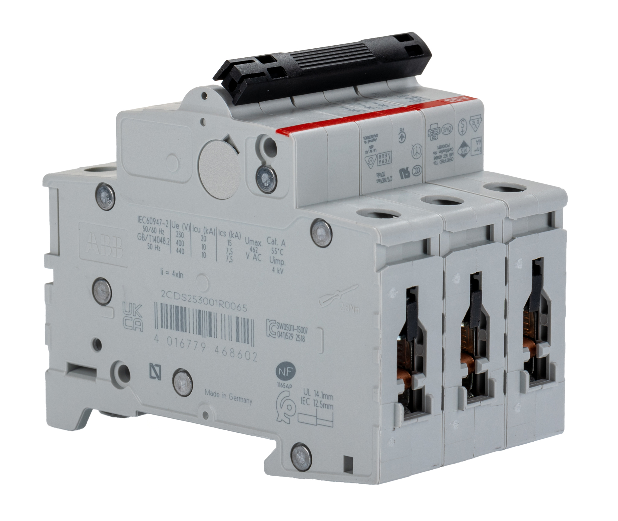 This is System M Pro 6A MCB Mini Circuit Breaker3P Curve B Breaking Capacity 6 kA manufactured by ABB. The manufacturer part number is 2CDS253001R0065 S203-B6. Is it a better world product? yes. The product has a current rating of 6a. Applications Information involves commercial, industrial. The product s200, is a highly preferred choice for users. This is a type of mcb, a circuit breaker with unique features. Its accurate length is 88mm. It has a model number s203-b6. It allows type b tripping features. The product is available in din rail mount style. Furthermore, the product is 52.5mm wide. The product comes in 69mm depth. The product has a rated AC voltage of 400v. The product has 10 ka breaking capacity at maximum voltage rating. The terminal contact is kind of screw. It features system pro m compact range. The product also provides special features, such as short circuit protection. It has equipped with 3 poles. It is a lever reset actuator.