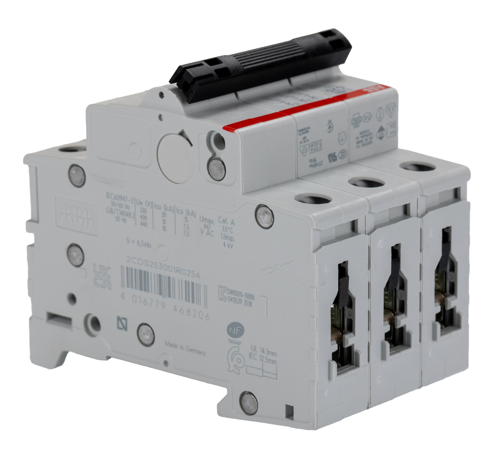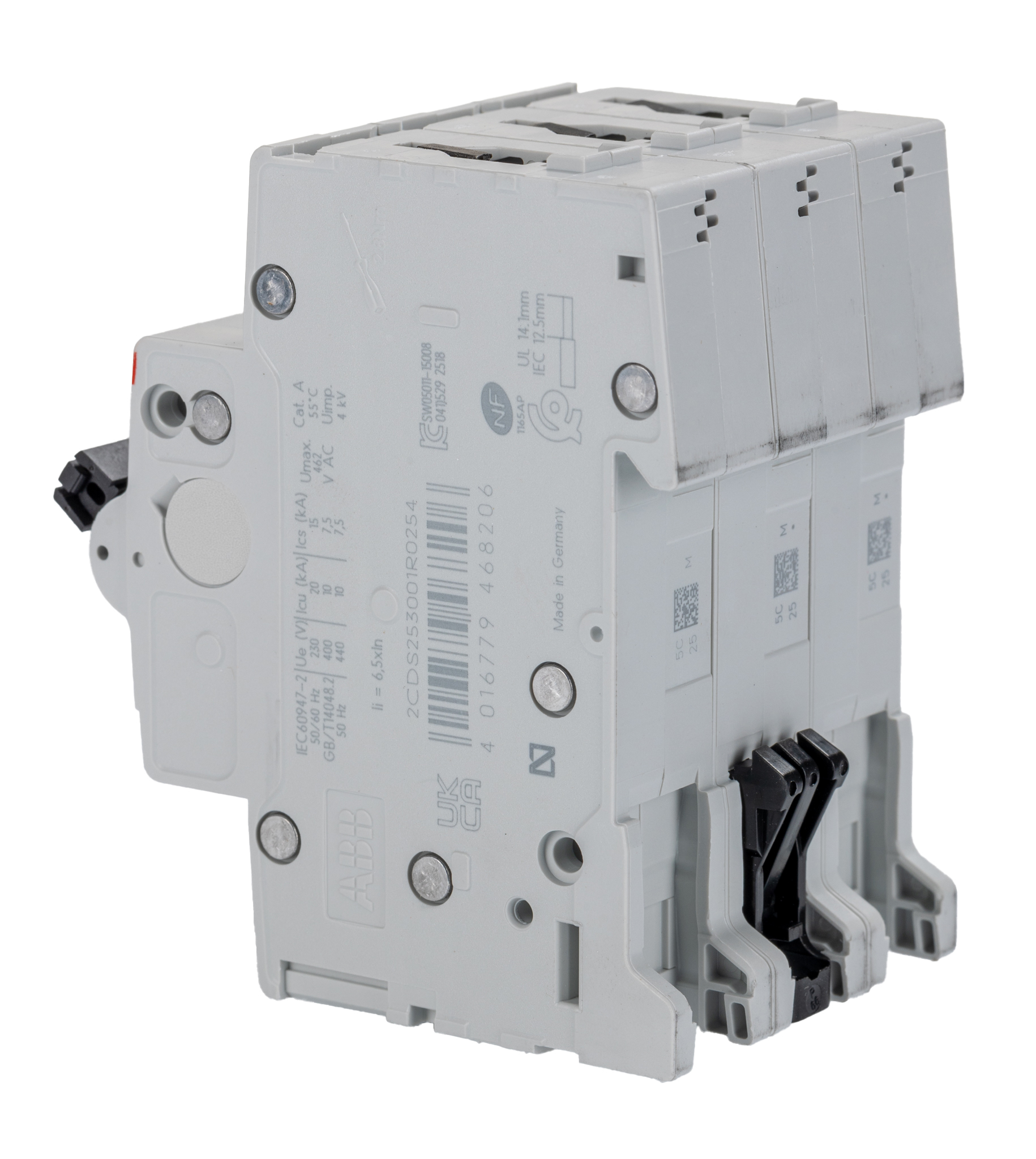 This is System M Pro 25A MCB Mini Circuit Breaker3P Curve C Breaking Capacity 6 kA manufactured by ABB. The manufacturer part number is 2CDS253001R0254 S203-C25. Is it a better world product? yes. The product has a current rating of 25a. Applications Information involves commercial, industrial. The product s200, is a highly preferred choice for users. This is a type of mcb, a circuit breaker with unique features. Its accurate length is 88mm. It has a model number s203-c25. It allows type c tripping features. The product is available in din rail mount style. Furthermore, the product is 52.5mm wide. The product comes in 69mm depth. The product has a rated AC voltage of 400v. The product has 10 ka breaking capacity at maximum voltage rating. The terminal contact is kind of screw. It features system pro m compact range. The product also provides special features, such as short circuit protection. It has equipped with 3 poles. It is a lever reset actuator.