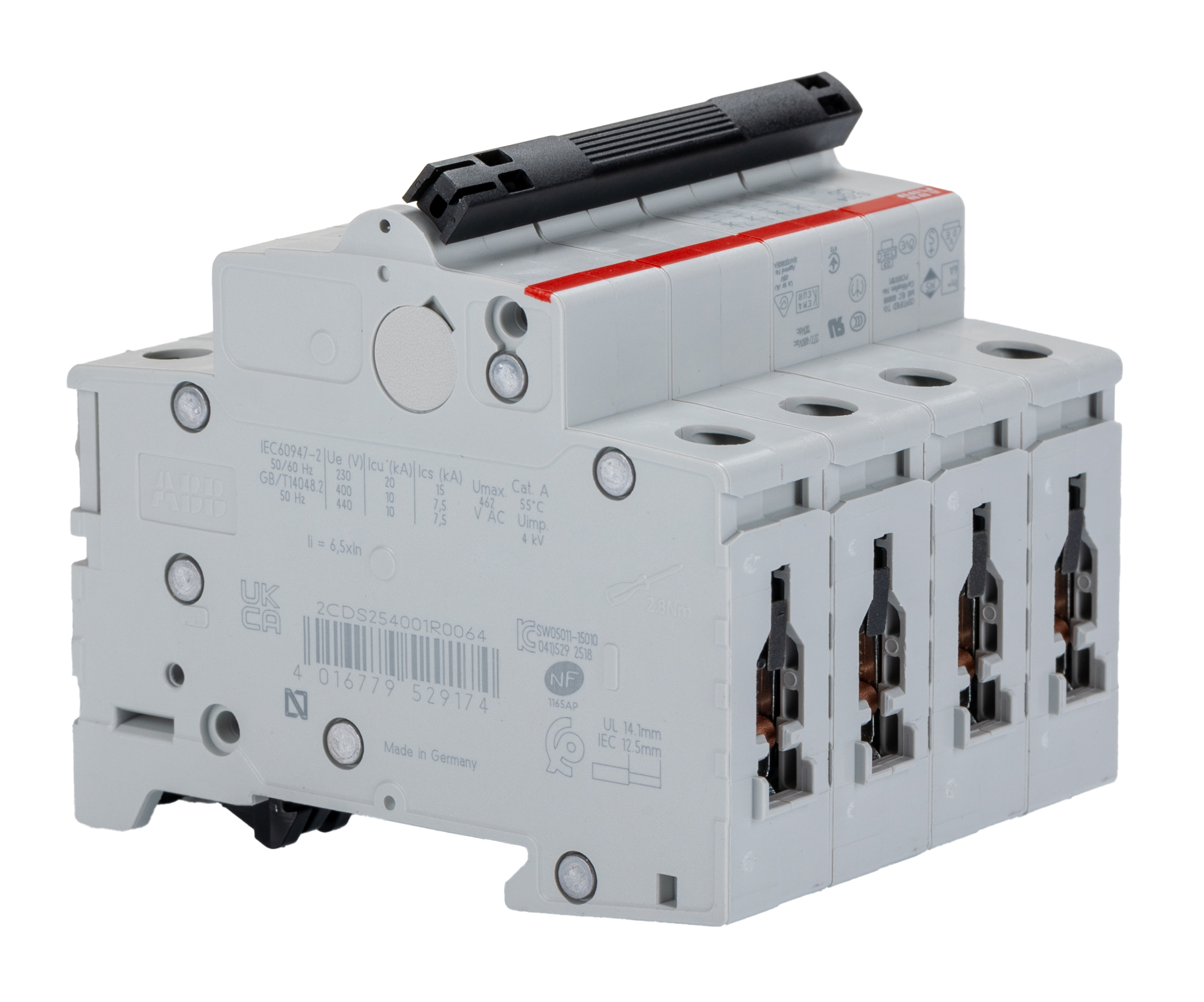 This is System M Pro 6A MCB Mini Circuit Breaker 4P Curve C Breaking Capacity 6 kA manufactured by ABB. The manufacturer part number is 2CDS254001R0064 S204-C6. Is it a better world product? yes. The product has a current rating of 6a. Furthermore, the product is 70mm wide. The product s200, is a highly preferred choice for users. This is a type of mcb, a circuit breaker with unique features. Its accurate length is 88mm. It has a model number s204-c6. It allows type c tripping features. The product is available in din rail mount style. Applications Information involves commercial, industrial. The product comes in 69mm depth. The product has a rated AC voltage of 400v. The product has 10 ka breaking capacity at maximum voltage rating. The terminal contact is kind of screw. It features system pro m compact range. The product also provides special features, such as short circuit protection. It has equipped with 4 poles. It is a lever reset actuator.