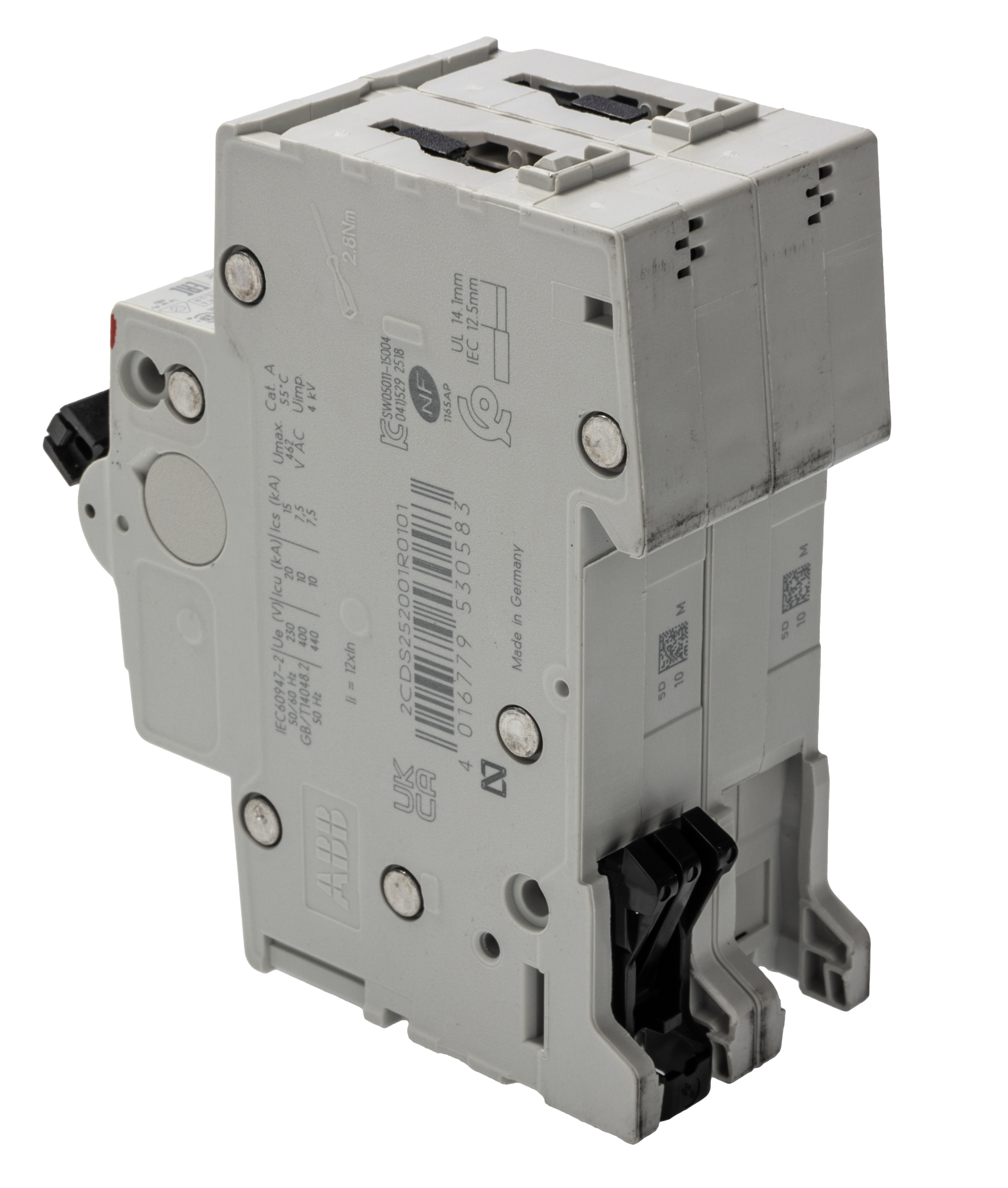 This is System M Pro 10A MCB Mini Circuit Breaker2P Curve D Breaking Capacity 6 kA manufactured by ABB. The manufacturer part number is 2CDS252001R0101 S202-D10. Is it a better world product? yes. The product has a current rating of 10a. Furthermore, the product is 35mm wide. The product s200, is a highly preferred choice for users. This is a type of mcb, a circuit breaker with unique features. Its accurate length is 88mm. It has a model number s202-d10. The product has a rated DC voltage of 125v. The product is available in din rail mount style. Applications Information involves commercial, industrial. The product comes in 69mm depth. The product has a rated AC voltage of 400v. The product has 10 ka breaking capacity at maximum voltage rating. The terminal contact is kind of screw. It features system pro m compact range. The product also provides special features, such as short circuit protection. It allows type d tripping features. It has equipped with 2 poles. It is a lever reset actuator.