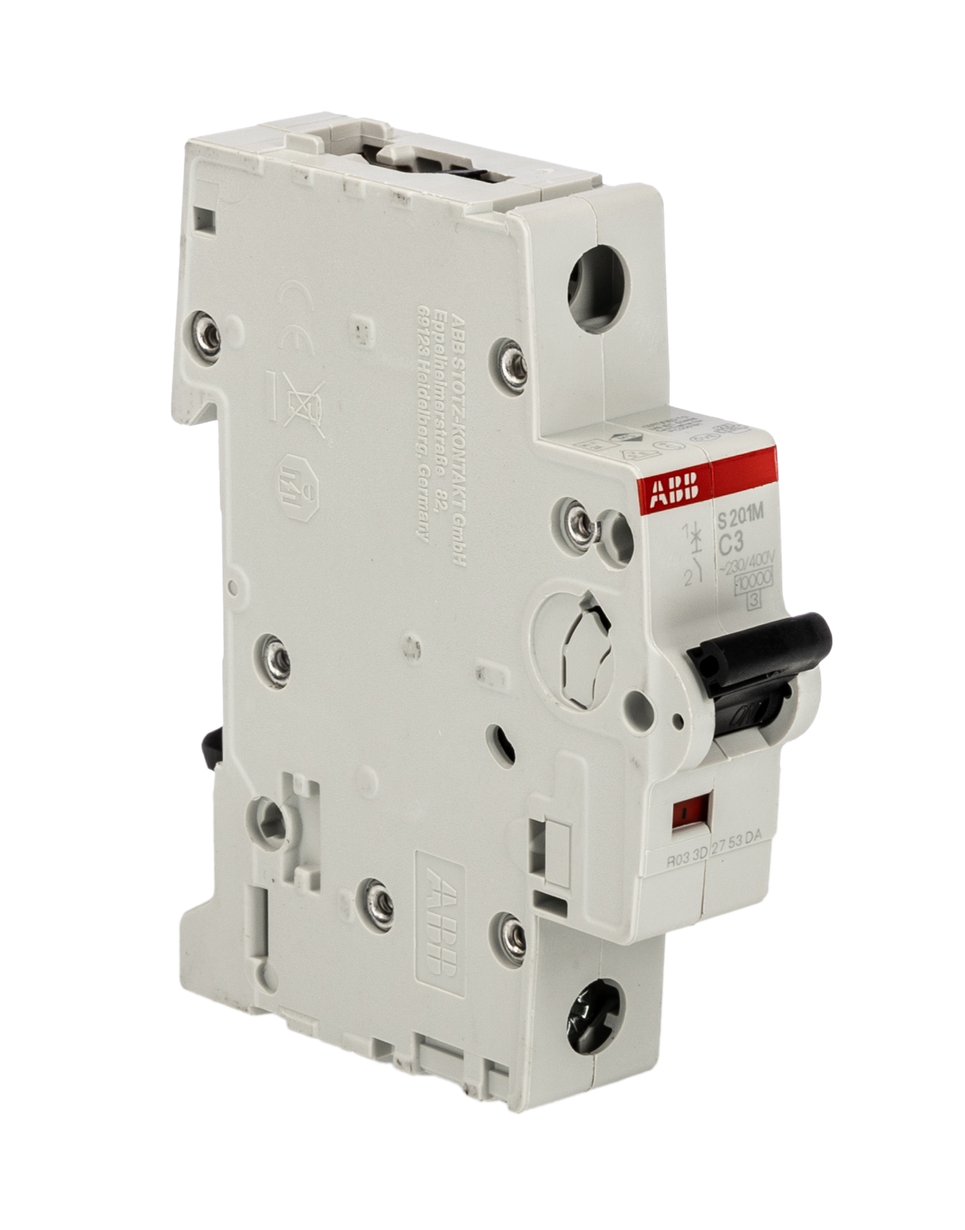 This is System M Pro 3A MCB Mini Circuit Breaker1P Curve C Breaking Capacity 10 kA manufactured by ABB. The manufacturer part number is 2CDS271001R0034 S201M-C3. Is it a better world product? yes. The product has a current rating of 3a. This is a type of mcb, a circuit breaker with unique features. The product s200m, is a highly preferred choice for users. It features system pro m compact range. It has a model number s201m-c3. It allows type c tripping features. The product is available in din rail mount style. The product comes in 69mm depth. The product has a rated AC voltage of 230v. The product has 10 ka breaking capacity at maximum voltage rating. It has equipped with 1 poles.