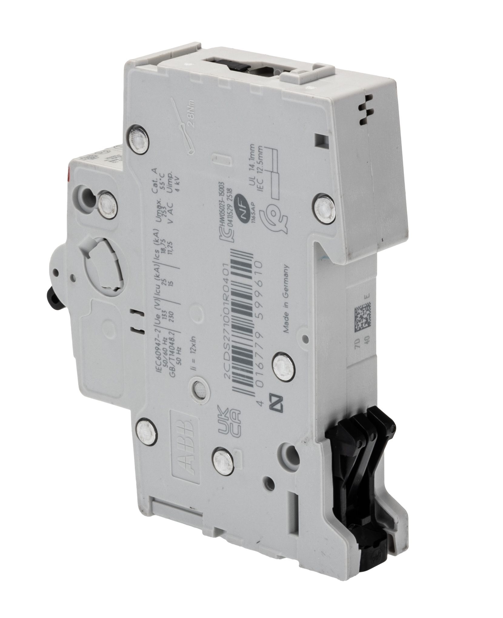 This is System M Pro 40A MCB Mini Circuit Breaker1P Curve D Breaking Capacity 10 kA manufactured by ABB. The manufacturer part number is 2CDS271001R0401 S201M-D40. The product has a current rating of 40a. Furthermore, the product is 17.5mm wide. The product s200m, is a highly preferred choice for users. This is a type of mcb, a circuit breaker with unique features. Its accurate length is 88mm. It has a model number s201m-d40. The product has a rated DC voltage of 72v. The product is available in din rail mount style. Applications Information involves commercial, industrial. The product comes in 69mm depth. The product has a rated AC voltage of 230v. The product has 15 ka breaking capacity at maximum voltage rating. It features system pro m compact range. The terminal contact is kind of screw. The product also provides special features, such as short circuit protection. It allows type d tripping features. It has equipped with 1 poles. It is a lever reset actuator.