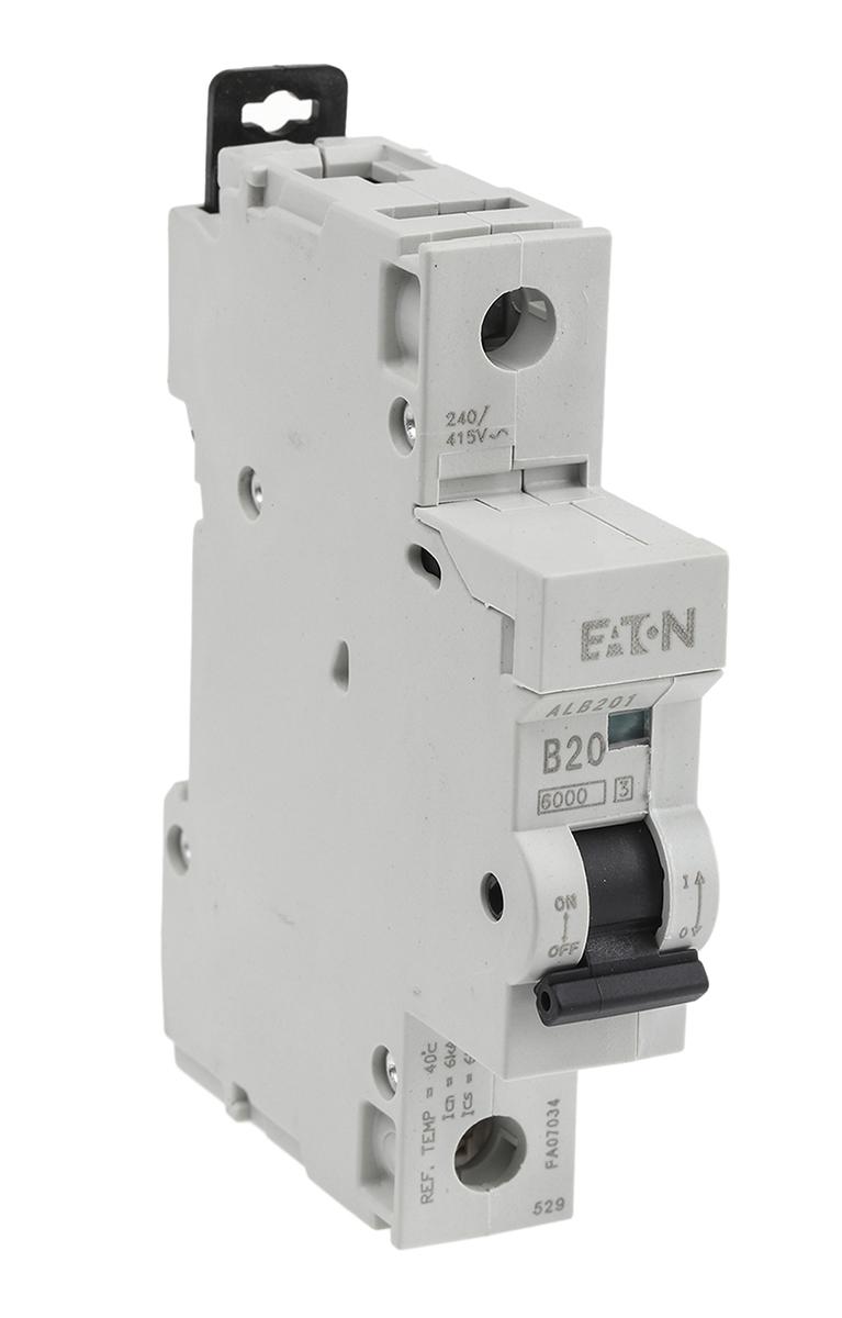 This is Memera 20A1P Curve B manufactured by Eaton. The manufacturer part number is 178026 & ALB201. The product has a current rating of 20a. This is a type of mcb, a circuit breaker with unique features. The product alb, is a highly preferred choice for users. It allows type b tripping features. The product is available in din rail mount style. It features memera range. The product has 6 ka breaking capacity at maximum voltage rating. It has equipped with 1p poles.