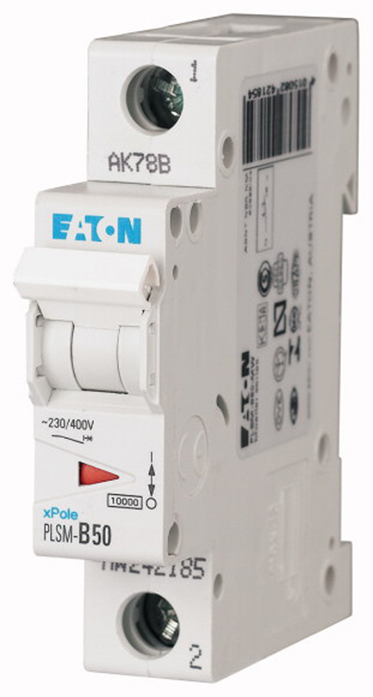 This is xPole 50A MCB Mini Circuit Breaker1P Curve C Breaking Capacity 10 kA manufactured by Eaton. The manufacturer part number is 242211 PLSM-C50-MW. The product has a current rating of 50a. This is a type of mcb, a circuit breaker with unique features. The product eaton moeller, is a highly preferred choice for users. Its accurate length is 17.5mm. The product has a rated DC voltage of 48v. The product is available in din rail mount style. Furthermore, the product is 80mm wide. The product comes in 75mm depth. It features xpole range. The product has 10 ka breaking capacity at maximum voltage rating. It allows type c tripping features. It has equipped with 1p poles.