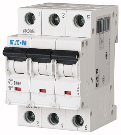 This is xPole 40A MCB Mini Circuit Breaker3P Curve B Breaking Capacity 10 kA 400V manufactured by Eaton. The manufacturer part number is 236404 PXL-B40/3. The product has a current rating of 40a. This is a type of mcb, a circuit breaker with unique features. The product pxl, s200, is a highly preferred choice for users. Its accurate length is 52.5mm. The product has a rated DC voltage of 48v. The product is available in din rail mount style. Furthermore, the product is 80mm wide. The product comes in 60mm depth. The product has a rated AC voltage of 400v. It features xpole range. The product has 10 ka breaking capacity at maximum voltage rating. It allows type b tripping features. It has equipped with 3 poles.