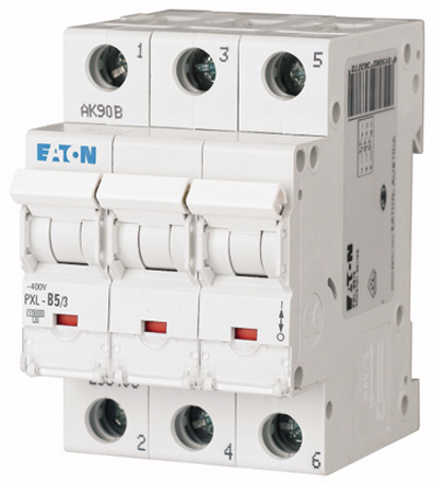 This is xPole 5A MCB Mini Circuit Breaker3P Curve D Breaking Capacity 10 kA 400V manufactured by Eaton. The manufacturer part number is 236458 PXL-D5/3. The product has a current rating of 5a. This is a type of mcb, a circuit breaker with unique features. The product pxl, s200, is a highly preferred choice for users. Its accurate length is 52.5mm. The product has a rated DC voltage of 48v. The product is available in din rail mount style. Furthermore, the product is 80mm wide. The product comes in 60mm depth. The product has a rated AC voltage of 400v. It features xpole range. The product has 10 ka breaking capacity at maximum voltage rating. It allows type d tripping features. It has equipped with 3p poles.