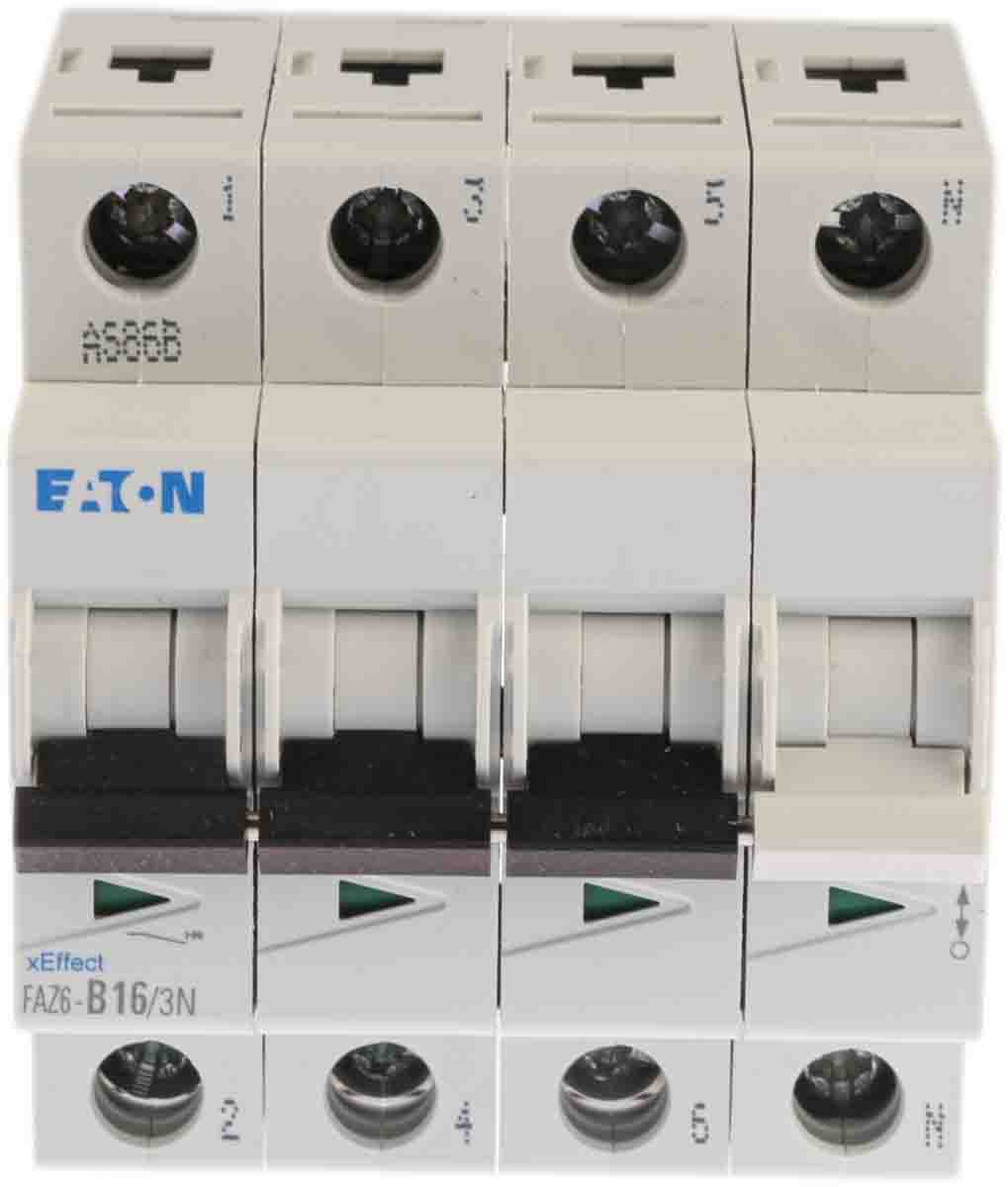 This is xEffect 16A MCB Mini Circuit Breaker Curve B Breaking Capacity 6 kA 230 → 400V manufactured by Eaton. The manufacturer part number is 239158 FAZ6-B16/3N. The product has a current rating of 16a. This is a type of mcb, a circuit breaker with unique features. Its accurate length is 80mm. It allows type b tripping features. The product is available in din rail mount style. Furthermore, the product is 17.5mm wide. The product comes in 62mm depth. The product has a rated AC voltage of 230 → 400v. It features xeffect range. The product has 6 ka breaking capacity at maximum voltage rating.